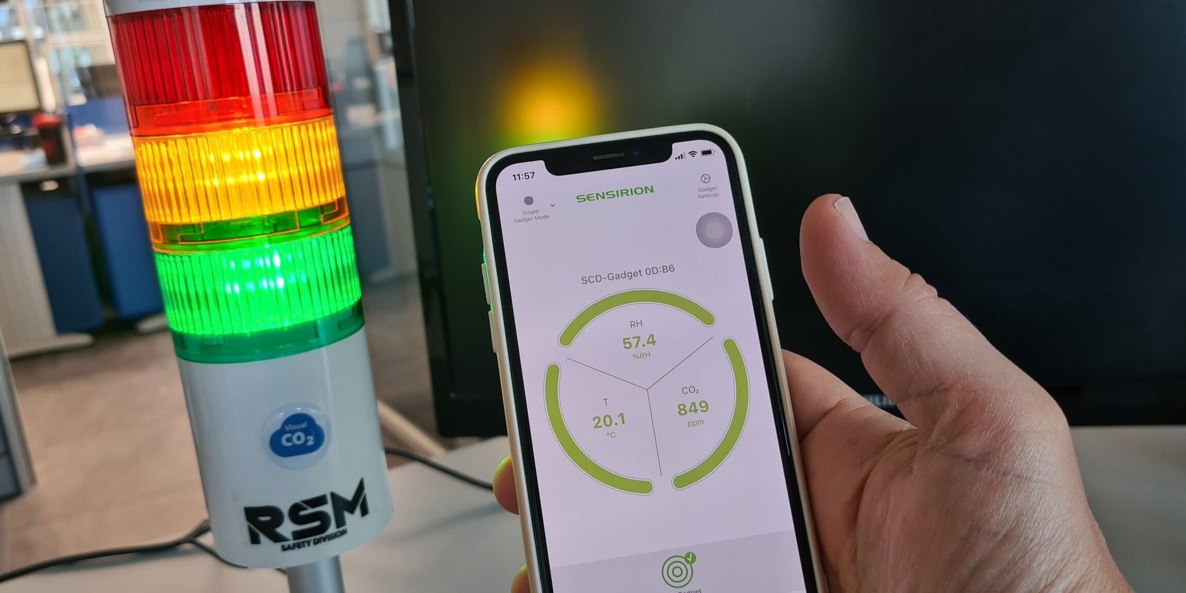 Con la colonnina RSM Patlite hai sempre i valori in tempo reale di CO2 (anidrite carbonica), umidità e temperatura dell’ambiente in cui è installata.